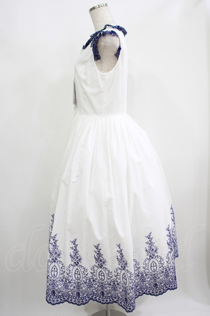 Moi-meme-Moitie / Rose Garden刺繍サンドレス 9号 白×青 H-25-09-01-003-MO-OP-KB-ZH [戻る]