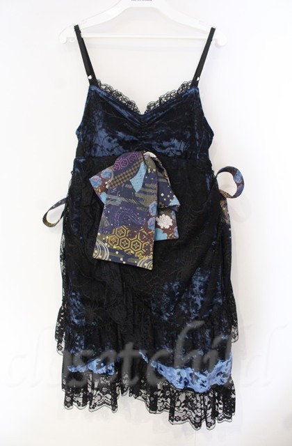 Qutie Frash / クモメッシュリボンブローチ付ベビードール ブルー×ブラック O-25-12-03-003-QU-OP-IG-OS