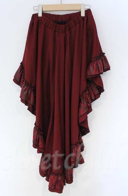 Qutie Frash / 裏地和柄後ろロングスカート レッド O-25-12-03-043-QU-SK-IG-ZT176