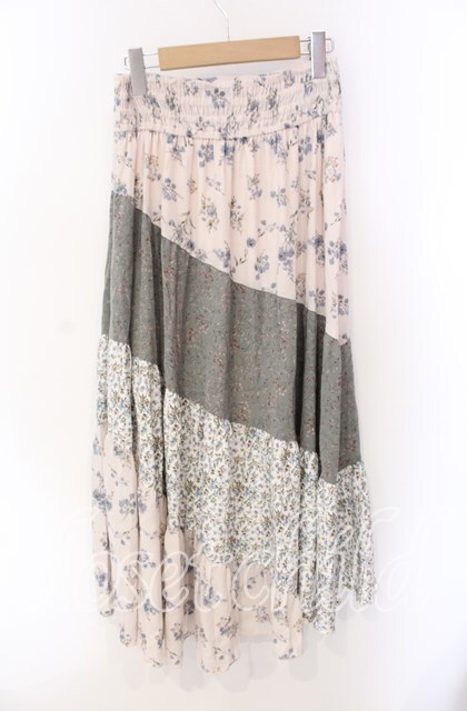 axes femme / フラワー柄エスカルゴスカート M アイボリーxグリーン O-25-08-26-053-AX-SK-YM-ZT510