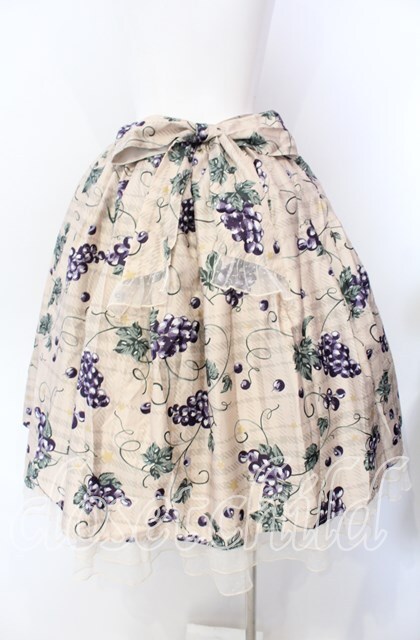 axes femme kawaii / ぶどう柄スカート M ベージュ O-25-08-26-052-AX-SK-YM-ZT052