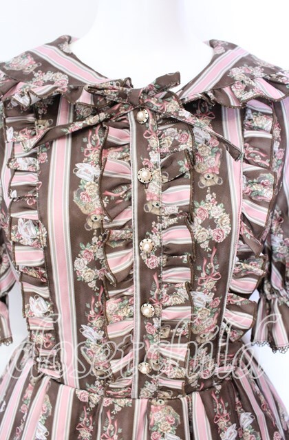 axes femme kawaii / RosyBear柄ワンピース M チャ O-25-08-26-028-AX-OP-YM-ZT070