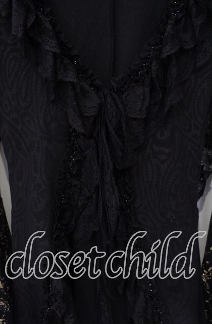 Qutie Frash / 姫袖レースカーデ ブラック×ゴールド O-25-08-26-102-QU-OP-IG-OS