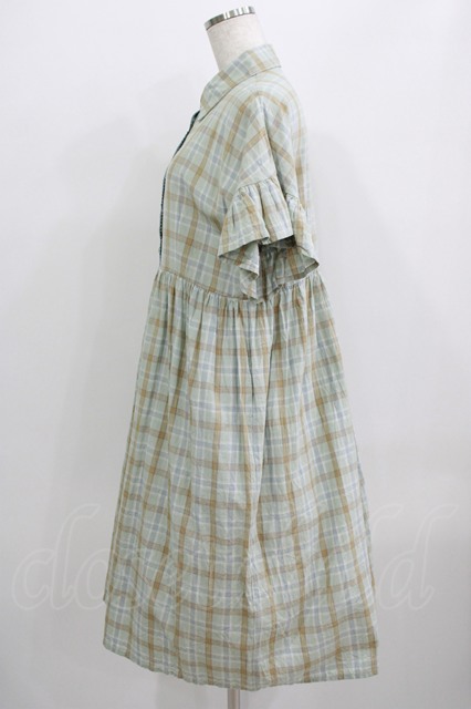 merry jenny / チェックフリルスリーブワンピース グリーン H-25-09-04-046-LO-OP-KB-ZH [戻る]