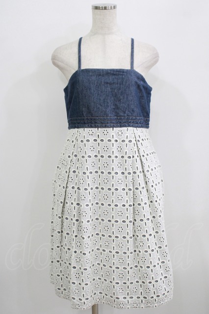 Shirley Temple / カットワークデニムワンピース 160 ブルー×オフホワイト H-25-09-04-059-ET-OP-KB-ZH