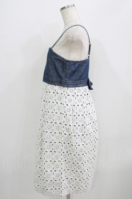 Shirley Temple / カットワークデニムワンピース 160 ブルー×オフホワイト H-25-09-04-059-ET-OP-KB-ZH [戻る]