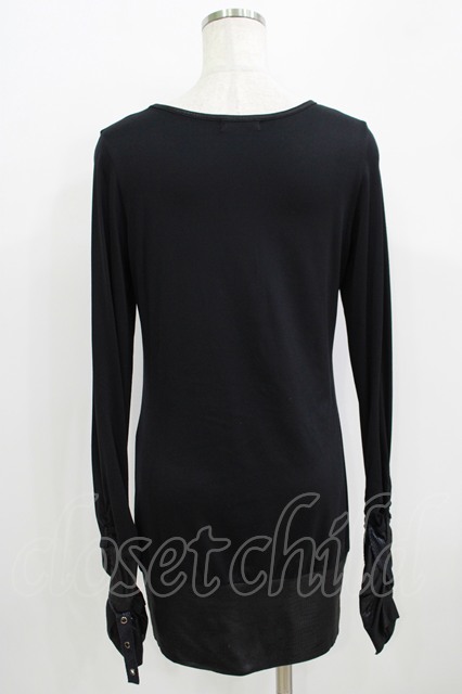Qutie Frash / ギャザー切替ロングカットソー 黒 H-25-09-04-078-QU-TO-KB-ZH