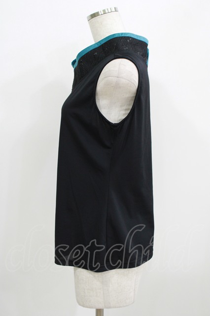 Qutie Frash / 着物衿インナータンク ブラック×ブルーグリーン H-25-09-04-079-QU-TO-KB-ZH