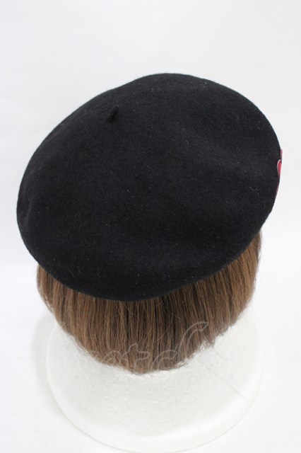 Dangerous nude / ハート刺繍ベレー帽 - ブラック H-25-09-02-1004-PU-AC-KB-ZH
