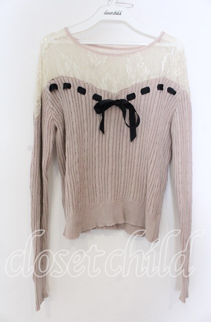 evelyn / デコルテレースリボンニット ピンク O-25-08-27-032-LO-TO-OW-ZT484