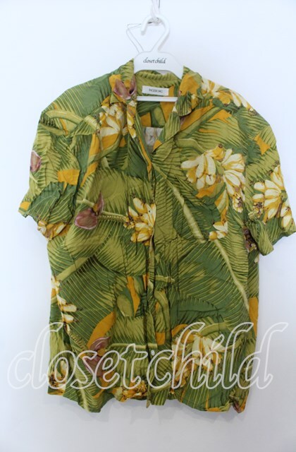 INGEBORG / バナナ柄開襟ブラウス グリーン×イエロー O-25-08-27-018-LO-BL-IG-ZI