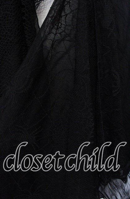 Qutie Frash / 蜘蛛の巣メッシュ重ね三角ストール ブラック O-25-08-28-020-QU-ZA-OW-OS