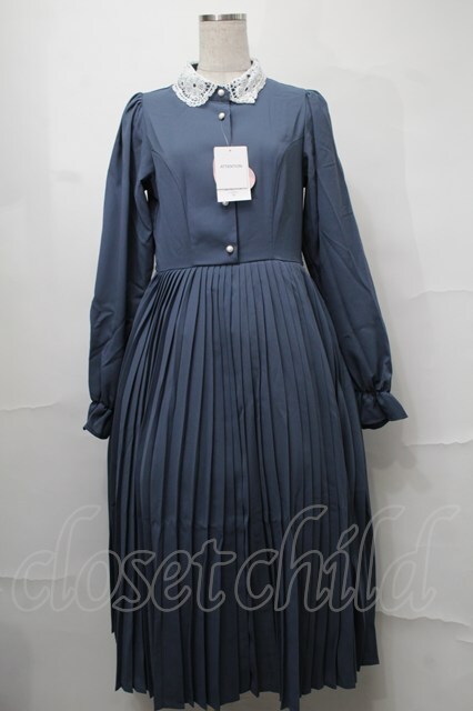 m petit by misako / レース襟プリーツワンピース ブルー S-25-08-26-045-LO-OP-HR-ZS
