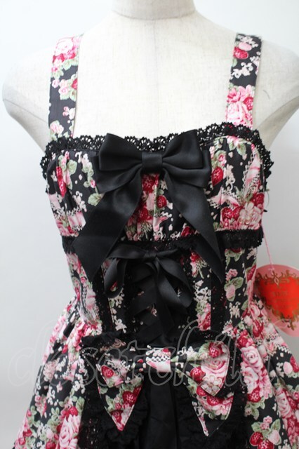BABY,THE STARS SHINE BRIGHT / シュガーブーケ〜永遠の乙女の憧れ〜柄ジャンパースカートIII 黒xピンク S-25-10-24-021-BA-OP-HR-ZS [戻る]