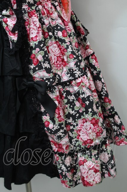 BABY,THE STARS SHINE BRIGHT / シュガーブーケ〜永遠の乙女の憧れ〜柄ジャンパースカートIII 黒xピンク S-25-10-24-021-BA-OP-HR-ZS