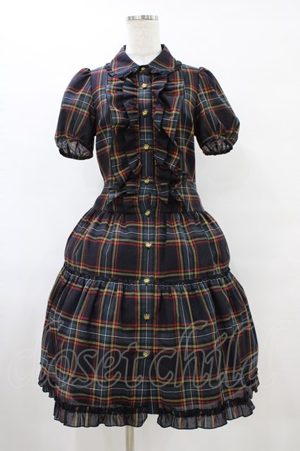 JESUS DIAMANTE / チェックティアードワンピース 40 ブラック/グリーン H-25-09-03-1030-JE-OP-NS-ZH