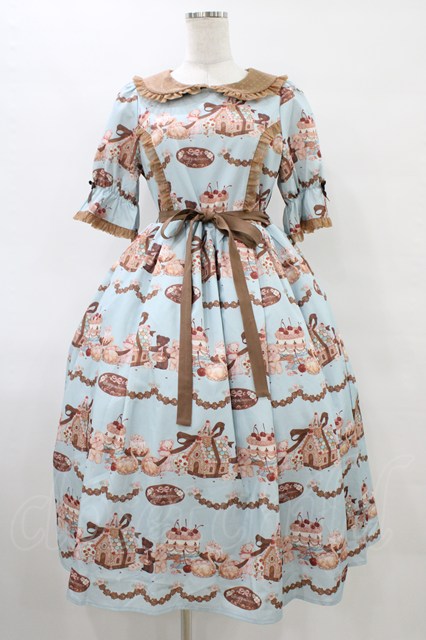 axes femme kawaii / お菓子の家柄ワンピース M サックス H-25-09-03-1029-AX-BL-NS-ZH