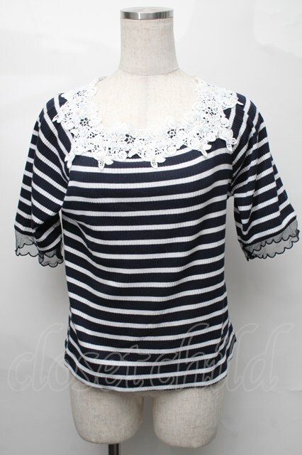 axes femme / トップス 紺x白 S-25-08-27-034-AX-TO-AS-ZS