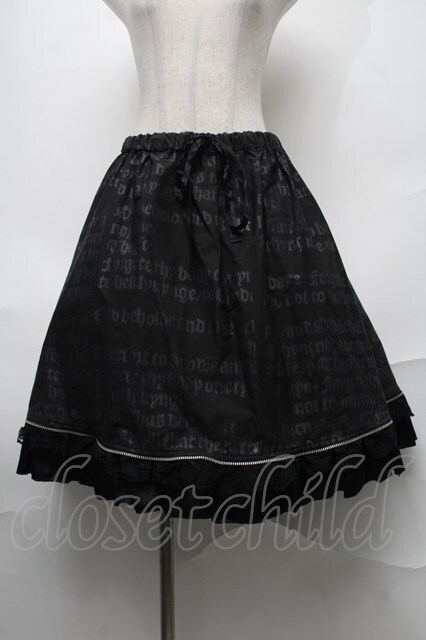 h.naoto Blood / 裾フリルプリントスカート 黒 S-25-08-27-059-HN-SK-HR-ZS