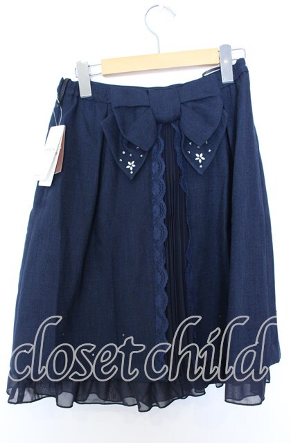 axes femme / バックリボンスカート M ネイビー O-25-08-29-024-AX-SK-OW-ZT002