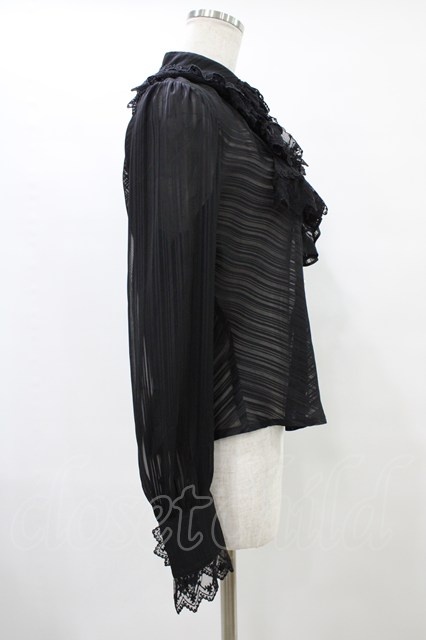 BABY,THE STARS SHINE BRIGHT / ストライプシフォン丸衿ブラウス Free ブラック H-25-09-04-1032-BA-BL-NS-ZH