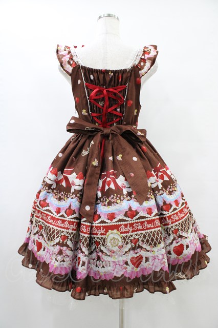 BABY,THE STARS SHINE BRIGHT / Strawberry Sweetheart Cake柄Ribbonジャンパースカート Free ブラウン H-25-09-04-1043-BA-OP-NS-ZH [戻る]