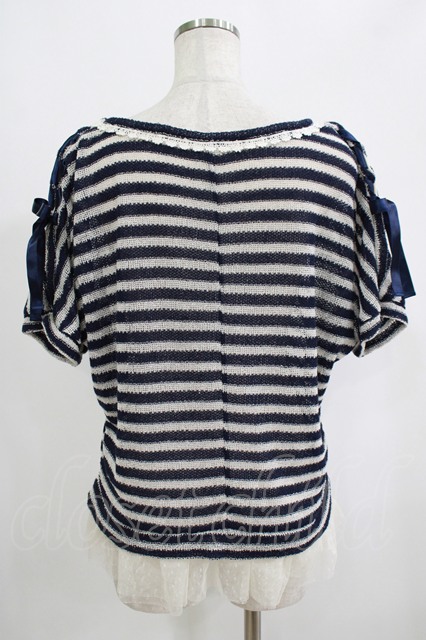 axes femme / 裾チュールボーダープルオーバー M ネイビー H-25-09-06-031-AX-TO-NS-ZH