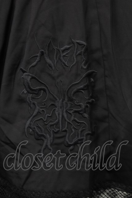 NieR Clothing / 刺繍フレアスカート 黒 S-25-08-28-056-PU-SK-HR-ZT355