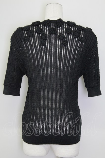 INGEBORG / カメリアモチーフ半袖ニットカーディガン 黒 T-25-08-30-006-LO-TO-SA-ZI