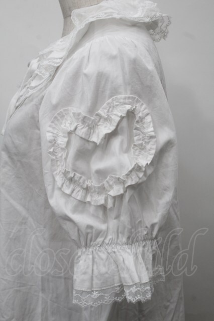 Chalmiere / ハートフリルパフ袖ブラウス 白 S-25-08-29-030-AX-BL-HR-ZS