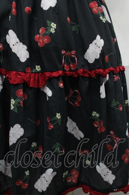 Chalmiere / チェリーバニー柄ワンピース 黒 S-25-08-29-056-AX-OP-HR-ZS