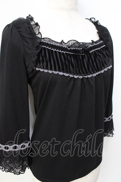 axes femme / ベロア使いカットソー 黒 Y-25-08-31-010-AX-TO-SZ-ZY