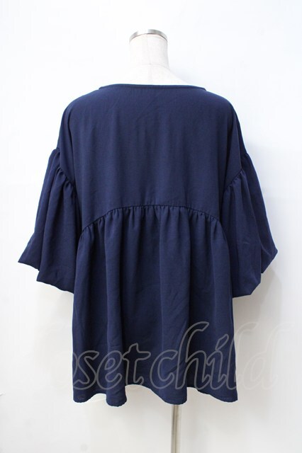 axes femme / 襟花モチーフトップス 紺 Y-25-08-31-020-AX-TO-SZ-ZY