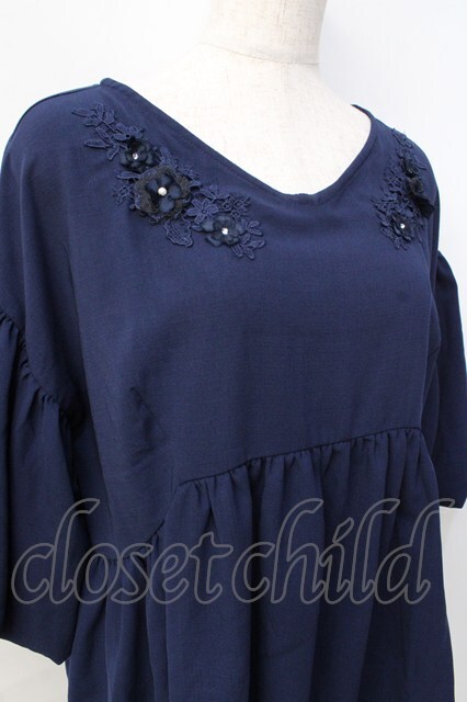 axes femme / 襟花モチーフトップス 紺 Y-25-08-31-020-AX-TO-SZ-ZY [戻る]