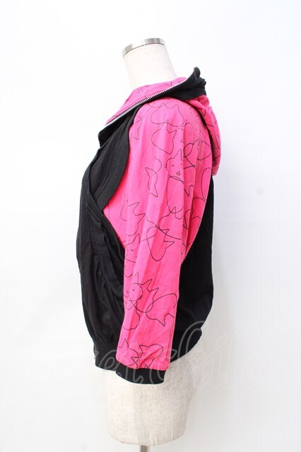 MINT NeKO / ねこじろうシルエット柄切替半袖パーカー 黒×ピンク Y-25-08-31-026-HN-TO-SZ-ZY