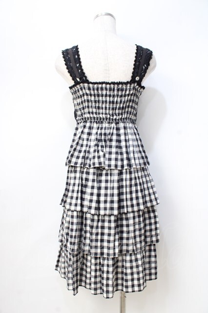 Emily Temple cute / ギンガムフリルティアードノースリーブワンピース 黒 Y-25-08-31-041-ET-OP-SZ-ZY