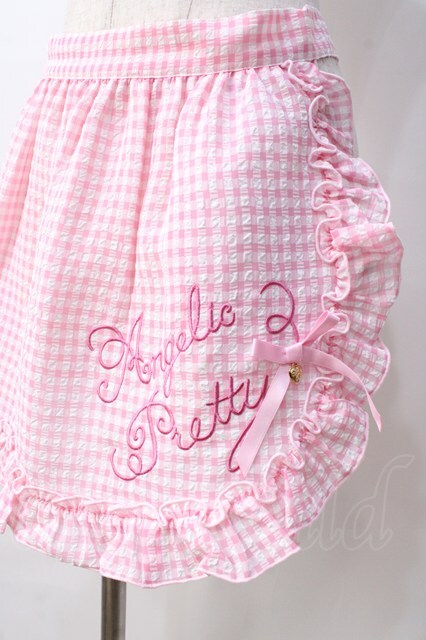 Angelic Pretty / オリジナルロゴギンガムフリルエプロン ピンク Y-25-08-31-059-AP-SK-SZ-ZY