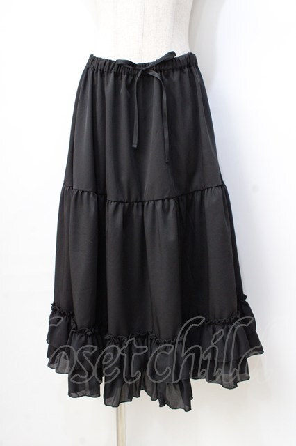 axes femme kawaii / ミディフリルペチスカート M 黒 Y-25-08-31-064-AX-SK-SZ-ZH