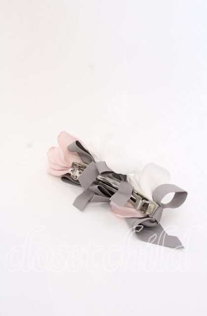 axes femme / フラワーリボンバレッタ ピンク×シロ×グレー O-25-08-31-053-AX-AC-OW-OS