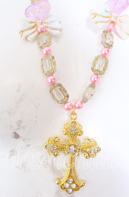 Estrellas / クロスビーズネックレス ピンク O-25-08-31-020-EL-AC-OW-OS