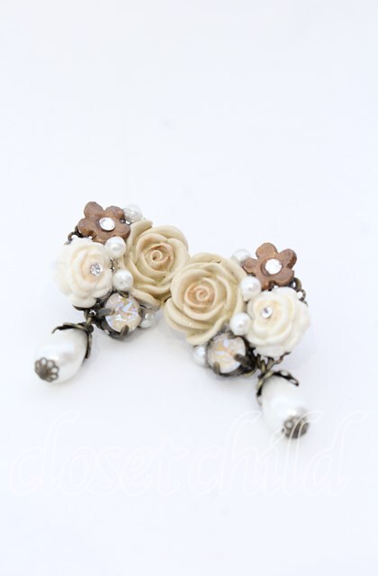hanakabeads / ミルクティーコラージュのピアス アイボリー O-25-08-31-070-LO-AC-OW-OS [戻る]