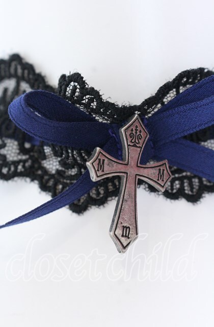 Moi-meme-Moitie / クロスロゴチャームレースチョーカー ブラック×ネイビー O-25-08-31-017-MO-AC-OW-OS