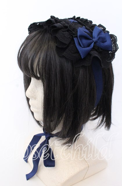 ATELIER PIERROT / Lace-up Frill Headdress ブラック×ネイビー O-25-08-31-047-EL-AC-OW-OS [戻る]
