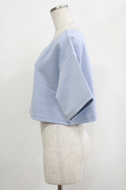 moulis' / クロップドロゴ刺繍Tシャツ LL サックス H-25-09-08-046-PU-TS-NS-ZH