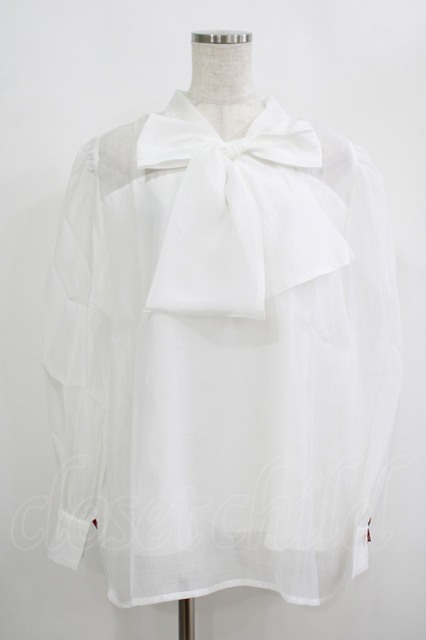 FLC / 皆方由衣コラボ/シアーリボンブラウス 4L オフ H-25-09-08-037-LO-BL-NS-ZH