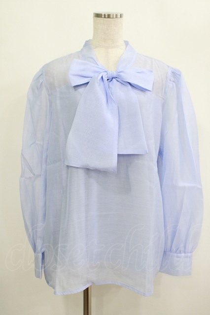 FLC / 皆方由衣コラボ/シアーリボンブラウス 4L サックス H-25-09-08-038-LO-BL-NS-ZH [戻る]