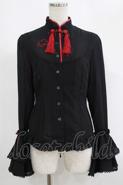 R-SERIES / チャイナブラウス M ブラック H-25-09-08-043-LO-BL-NS-ZH