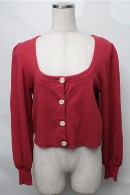 Fi.n.t / ローズ彫刻釦ディープカラーニットカーディガン 赤 S-25-08-31-030-CA-TO-HR-ZS