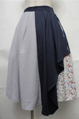 axes femme / スカーフ風花柄切替スカート 紺x白 S-25-08-31-053-AX-SK-AS-ZS