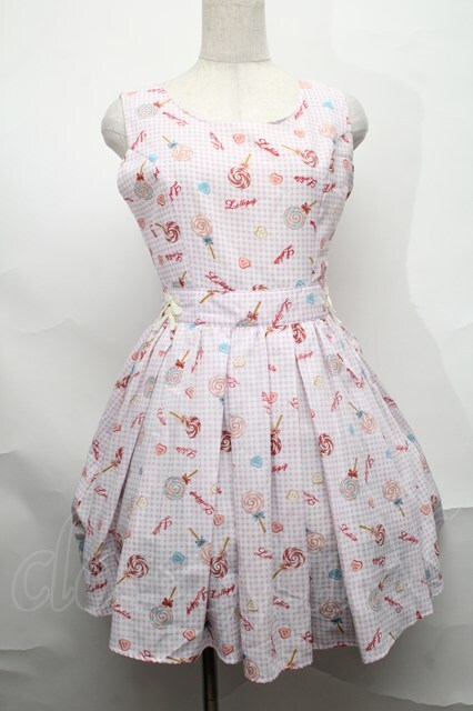 Ank Rouge / ギンガム×キャンディー柄ワンピース ラベンダー S-25-09-01-045-CA-OP-HR-ZS